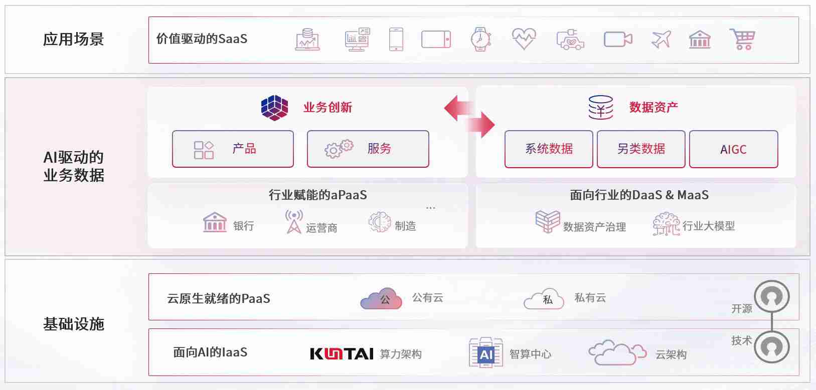 数字时代,,,围绕企业数字化转型的关键要素,,,,z6com·尊龙凯时数码开创性的提出数云融合战略和技术体系框架,,着力在云原生、、数字原生、、、AI原生和信创产业上架构产品和服务能力,,,,为处在不同数字化转型阶段的快消零售、、、、汽车、、、金融、、、、医疗、、、、政企、、、教育、、、、运营商等行业客户提供泛在的敏捷IT能力和融合的数据驱动能力,,,构建跨界融合创新的数字业务场景和新业务模式,,助力企业级客户建立面向未来的核心能力和竞争优势,,,,全面推动社会的数字化、、、、智能化转型升级。。。